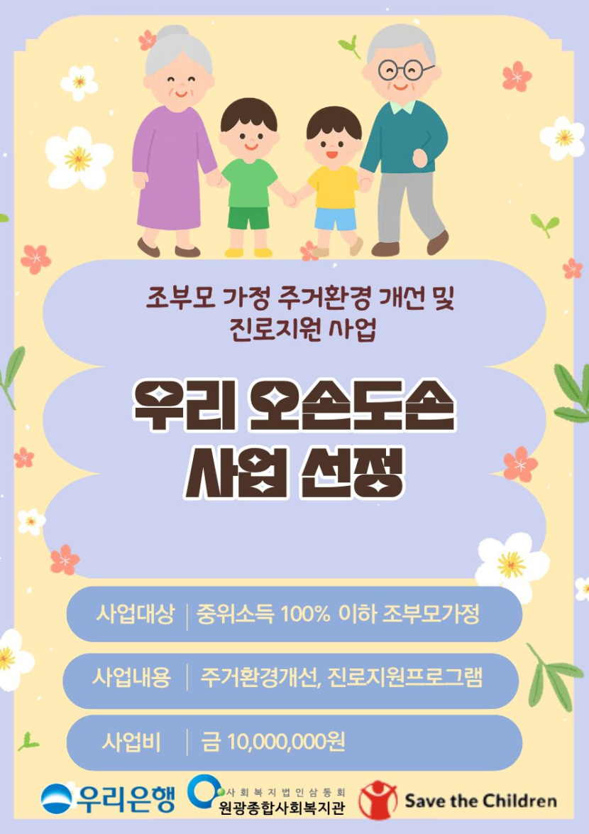 | 제목 | 2026 조부모 가정 주거환경 개선 및 진로지원 사업 '우리 오손도손' 사업 선정 |